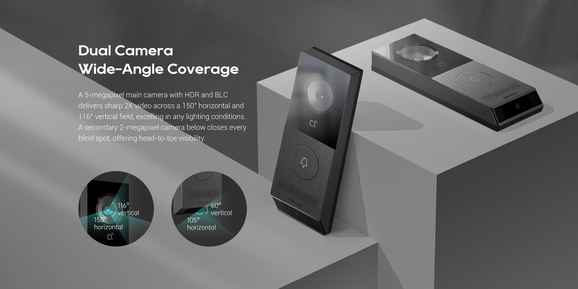 Secondary Camera: 2MP body-length view captures visitors from head to toe — ensures total visual coverage at the door