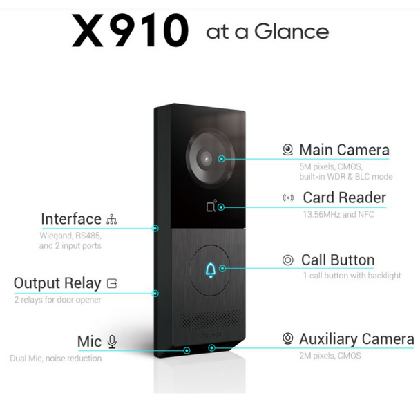 - Crafted in a compact, dark-finished aluminum frame, the X910 adds elegance to any premium home entrance.