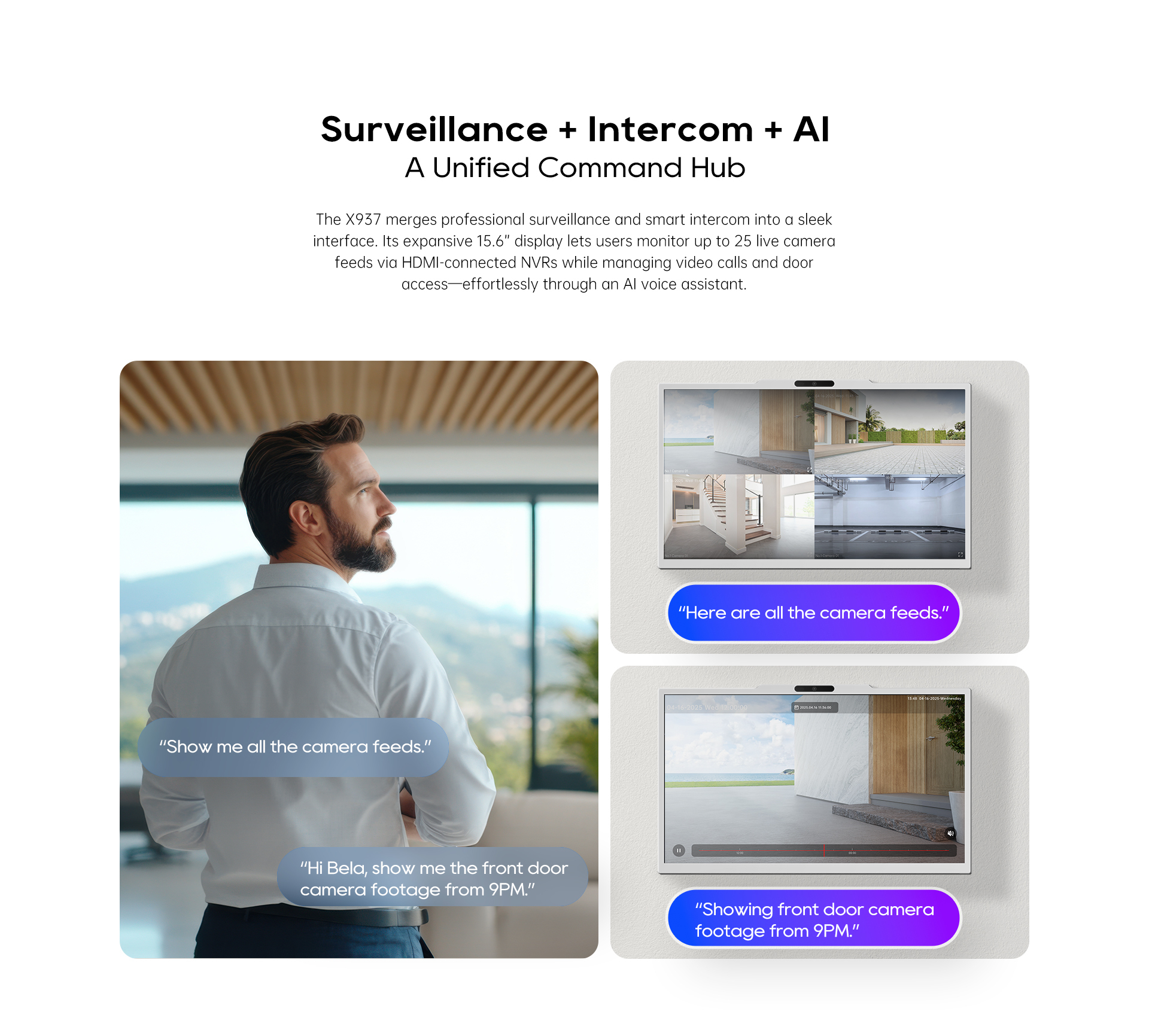 Product Description Videos Akuvox X937 | Surveillance + Intercom AI Monitor The Akuvox X937 is a 15.6-inch indoor monitor running Android ...